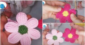 Learn how to crochet a 3D pink flower into a strip...